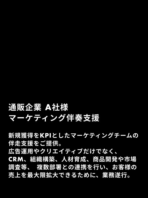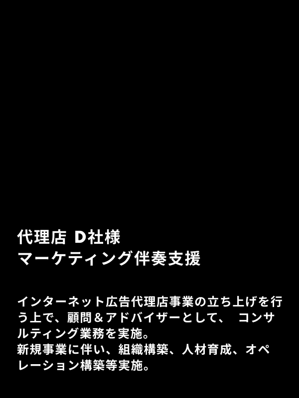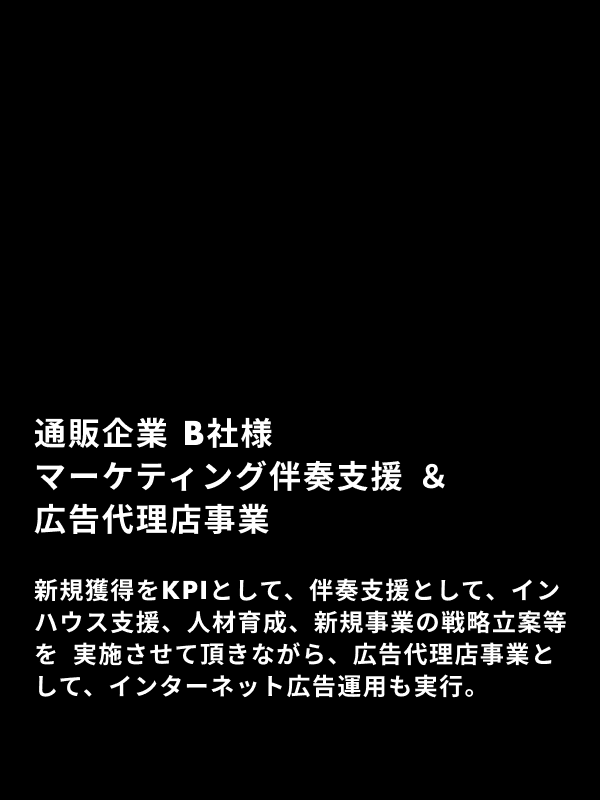 弊社は伴走支援を中心とした企業ではございますが、一部広告代理店として広告運用、制作物の作成等のご依頼に関しても支援させていただいております。